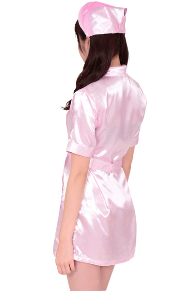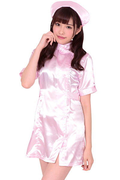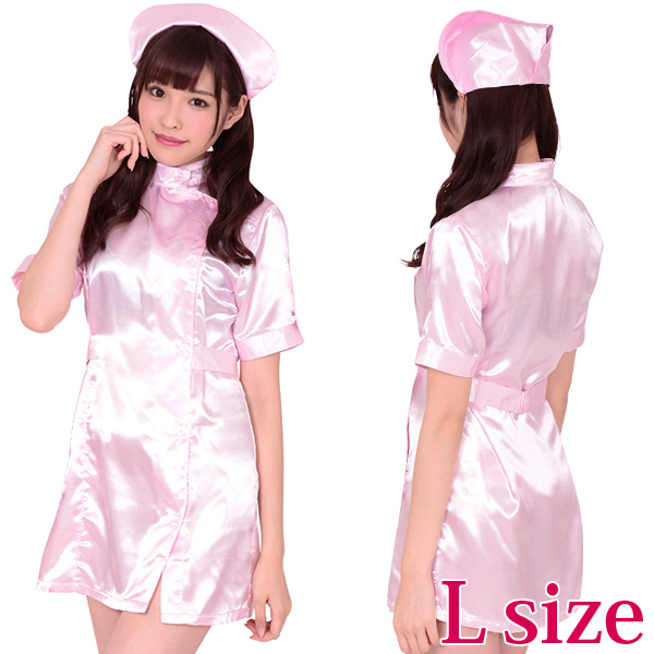 ミニワンピース&キャップがセットになったナース服コスプレ(L)。ミニ丈ワンピースのギリギリ感と、清楚なイメージのナース姿のギャップはとっても誘惑的!光沢感のあるキュートなピンクカラーが、セクシーさと可愛らしさの両方を演出してくれます。フロントはボタン式で下まで開きます。※Mサイズ(b15884)、LLサイズ(b18127)あります。
