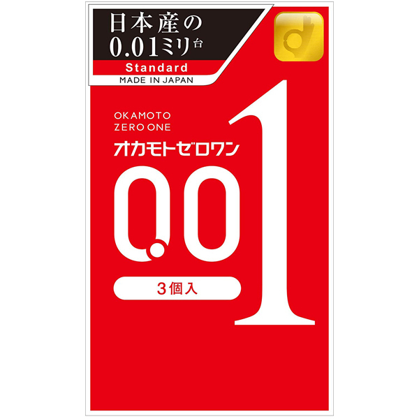 オカモト史上最薄!異次元の密着感を実現した、うすさ0.01ミリ台のポリウレタン製コンドーム「オカモトゼロワン」。●オカモト社が誇る、先端から根元まで「均一な薄さ」を0.01ミリ台で実現●ラテックスアレルギーを考慮した水系ポリウレタン製●独自の配合で仕上げた驚くほど柔らかくしなやかな仕上がり●ナチュラルなクリアカラーのスタンダードタイプ(3個入)●安心の自社工場で作られた日本製。装着時の使用感や締め付け感が少なく、パートナーの体温や感触を直接感じられるので二人の仲もさらに密着!創業80年の歴史を誇る、オカモト技術の集大成とも言えるコンドームです。